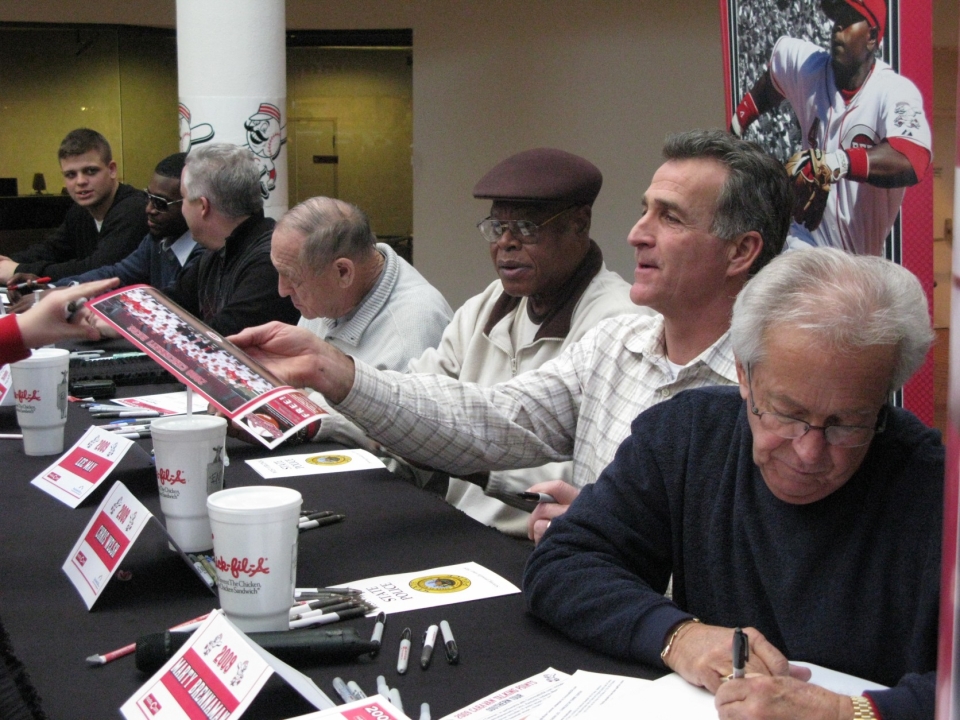 From Grayson, the self-proclaimed “Big League Leg” journeyed on to Charleston, WV for its first main public stop of the day. The location was the Charleston Towne Center, a very spacious mall where lots of fans offered a warm greeting. “I think its great the Reds come here because we don’t have any pro sports teams here in the state so the Reds are our team,” said Sara Harlan from – appropriately enough – Left Hand, WV. Sara also brought her 7year-old daughter Silken. Sara’s mom used to take her to Reds games when she was Silken’s age, so she wanted to provide an opprotunity to her daughter to introduce her to the franchise she’s grown up rooting for.